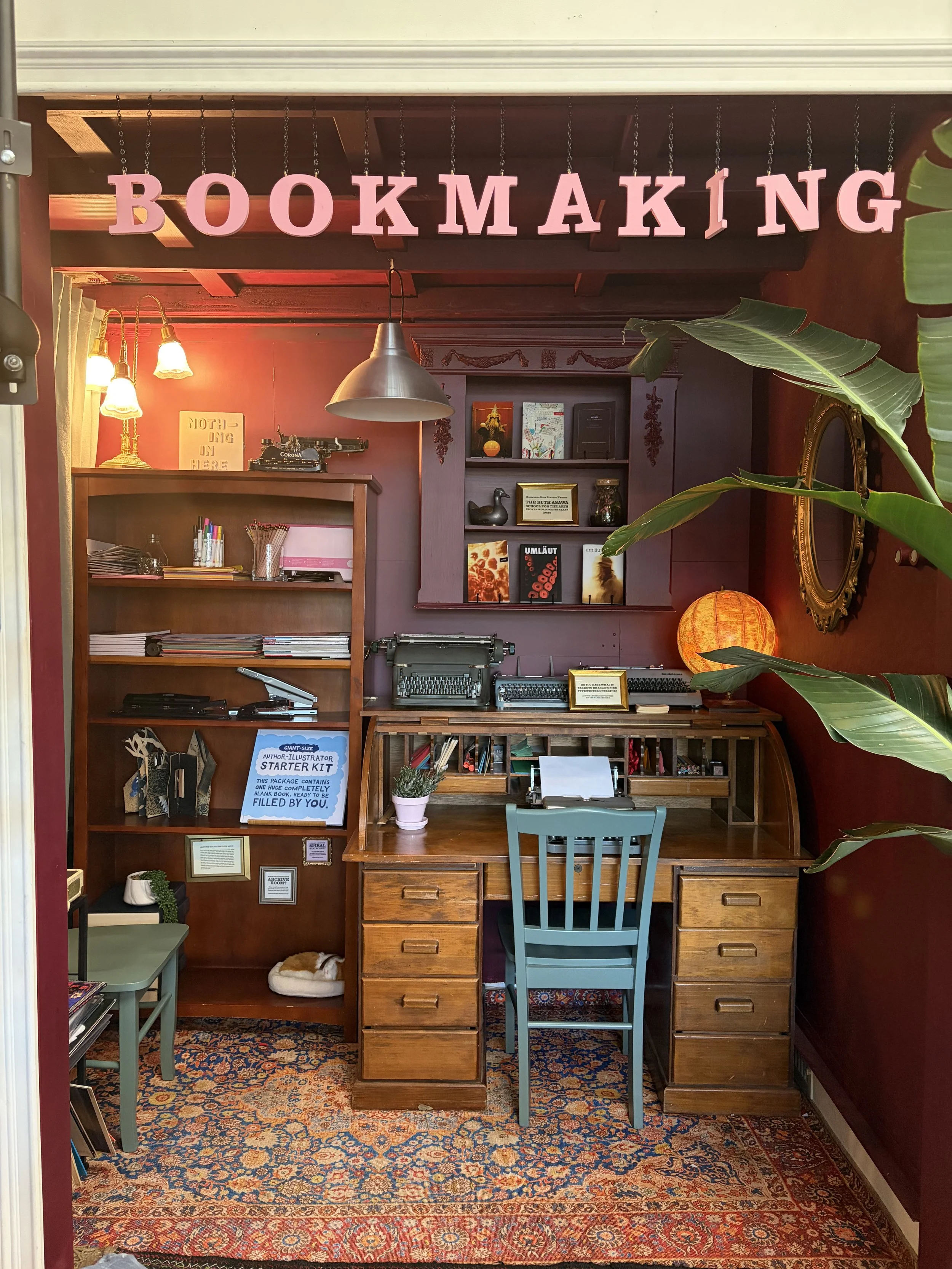 As you explore the library, you are welcomed by cozy, imaginative reading nooks and shelves lined high with anthologies, graphic novels, and more. Tucked in the back of the library is even a secret room filled with files of archival work produced by influential figures before the age of 18, including Greta Thunberg’s speech to the UN she wrote at 16 – a young person whose leadership first took shape through her writing .