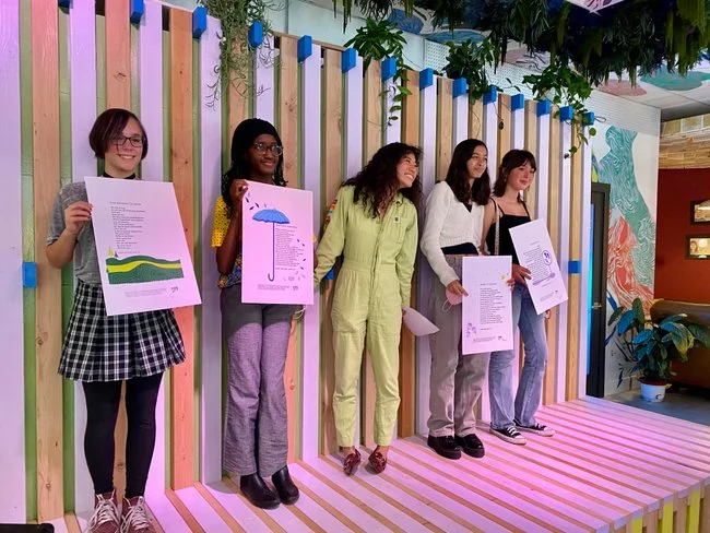 Our poetry program with Franklin Elementary fifth-graders has culminated in this gorgeous mural by Ryoko Tokuho! Thank you to our teaching artist Giovanna Lomanto for guiding the poets through writing this beautiful collaborative poem.